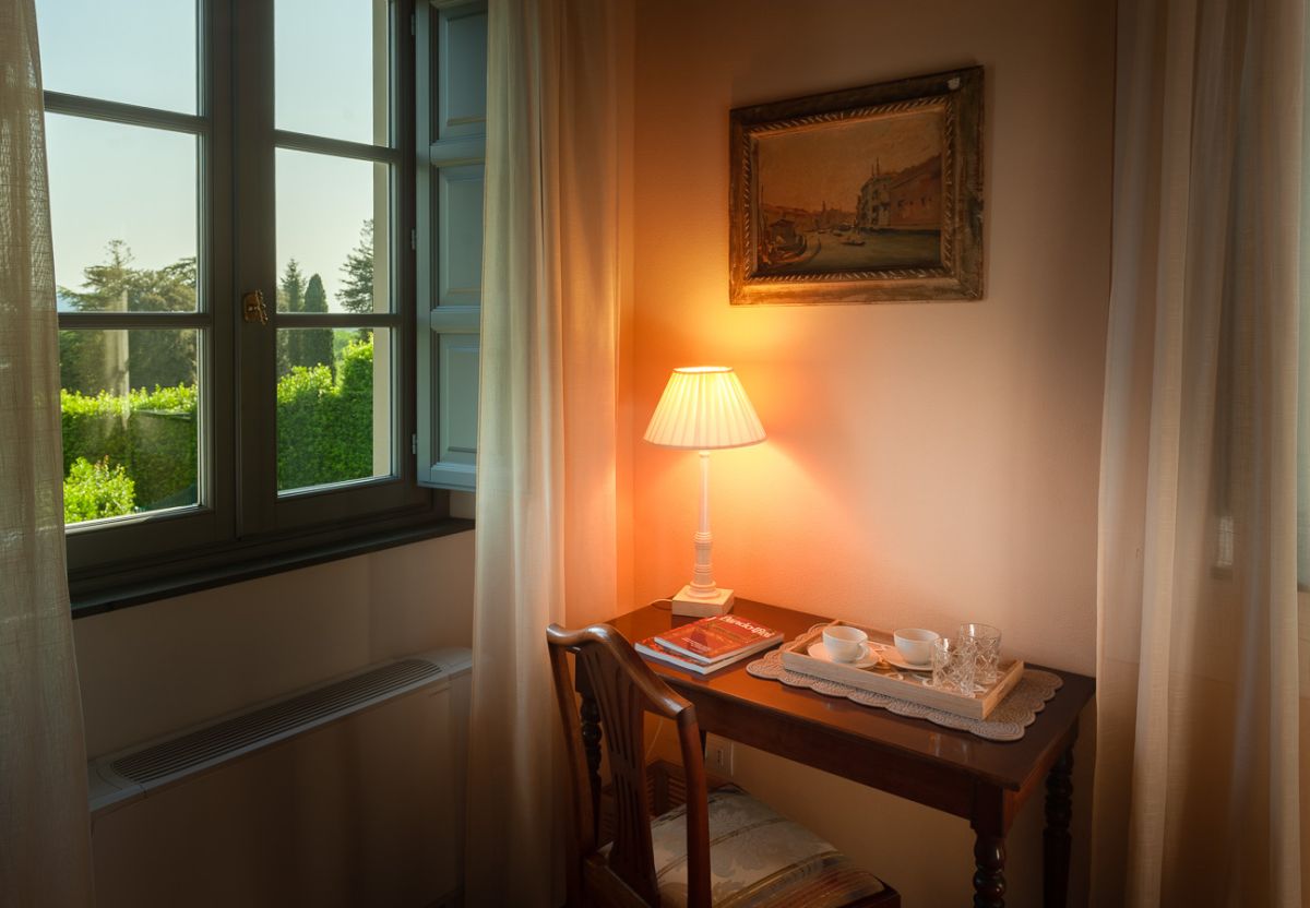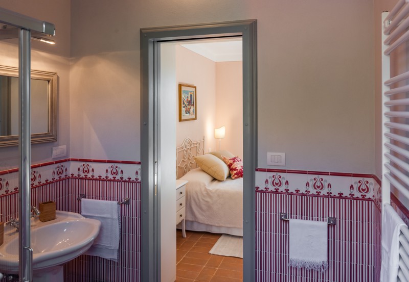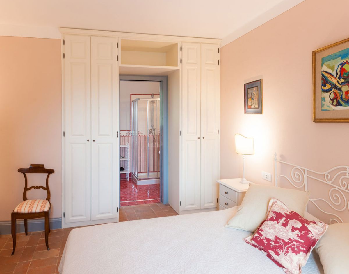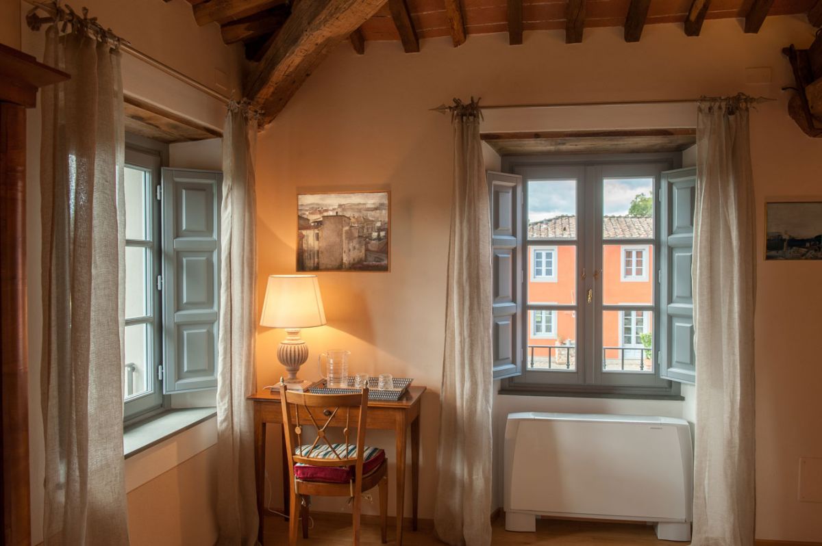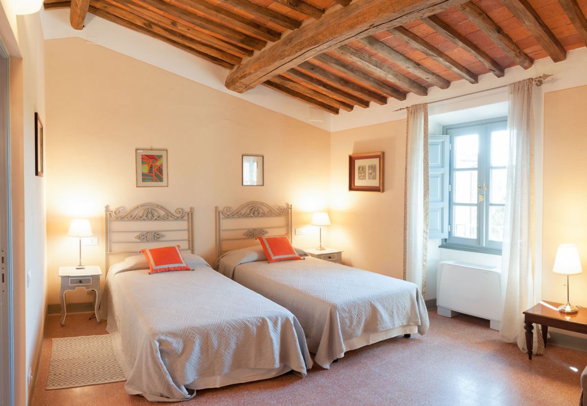 The rooms at Arancera are designed as bright, peaceful retreats where the understated elegance of the historic Lucchese villas meets contemporary comfort. Each space reflects the Tuscan tradition through authentic details: exposed wooden beams, handcrafted wooden window frames, a refined blend of antique furnishings and modern lines, and en-suite bathrooms decorated with hand-painted tiles created by master artisans.