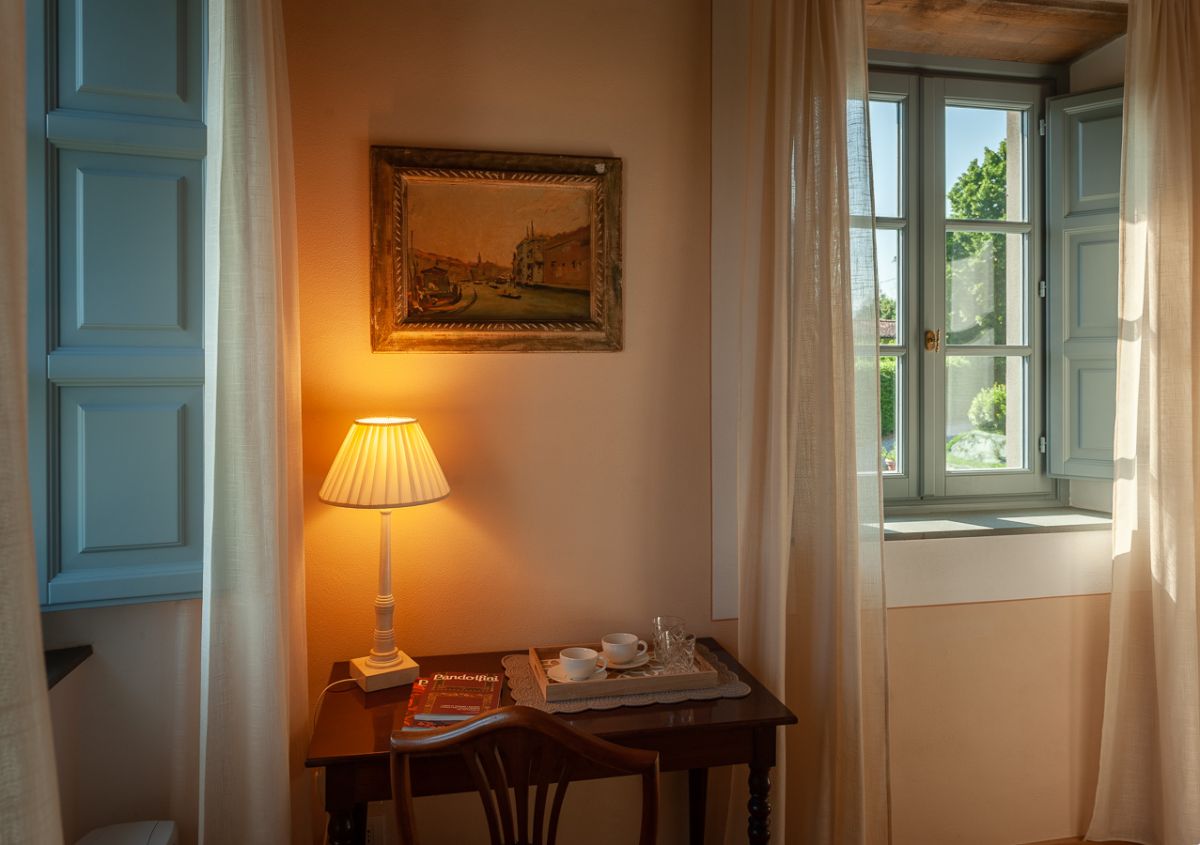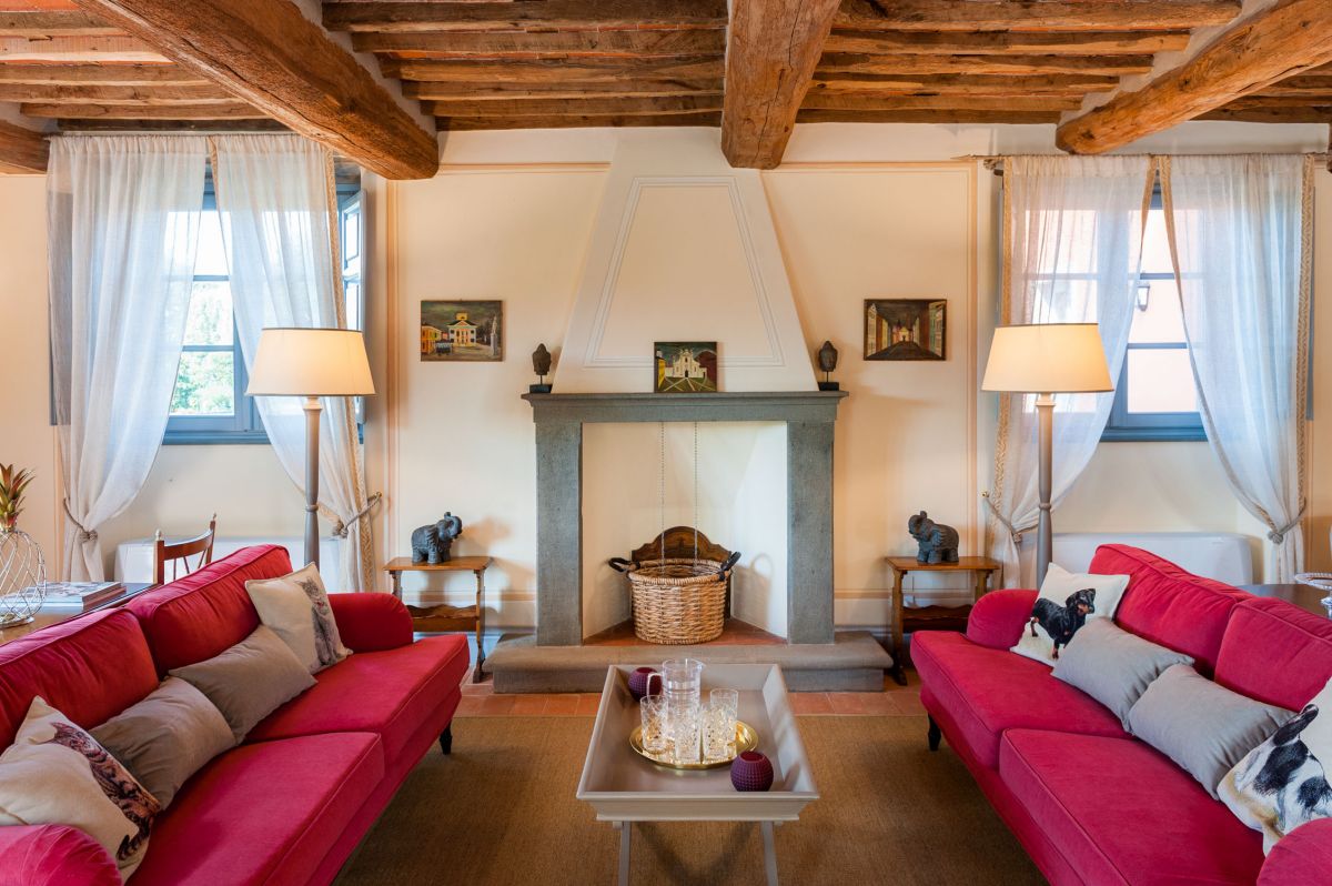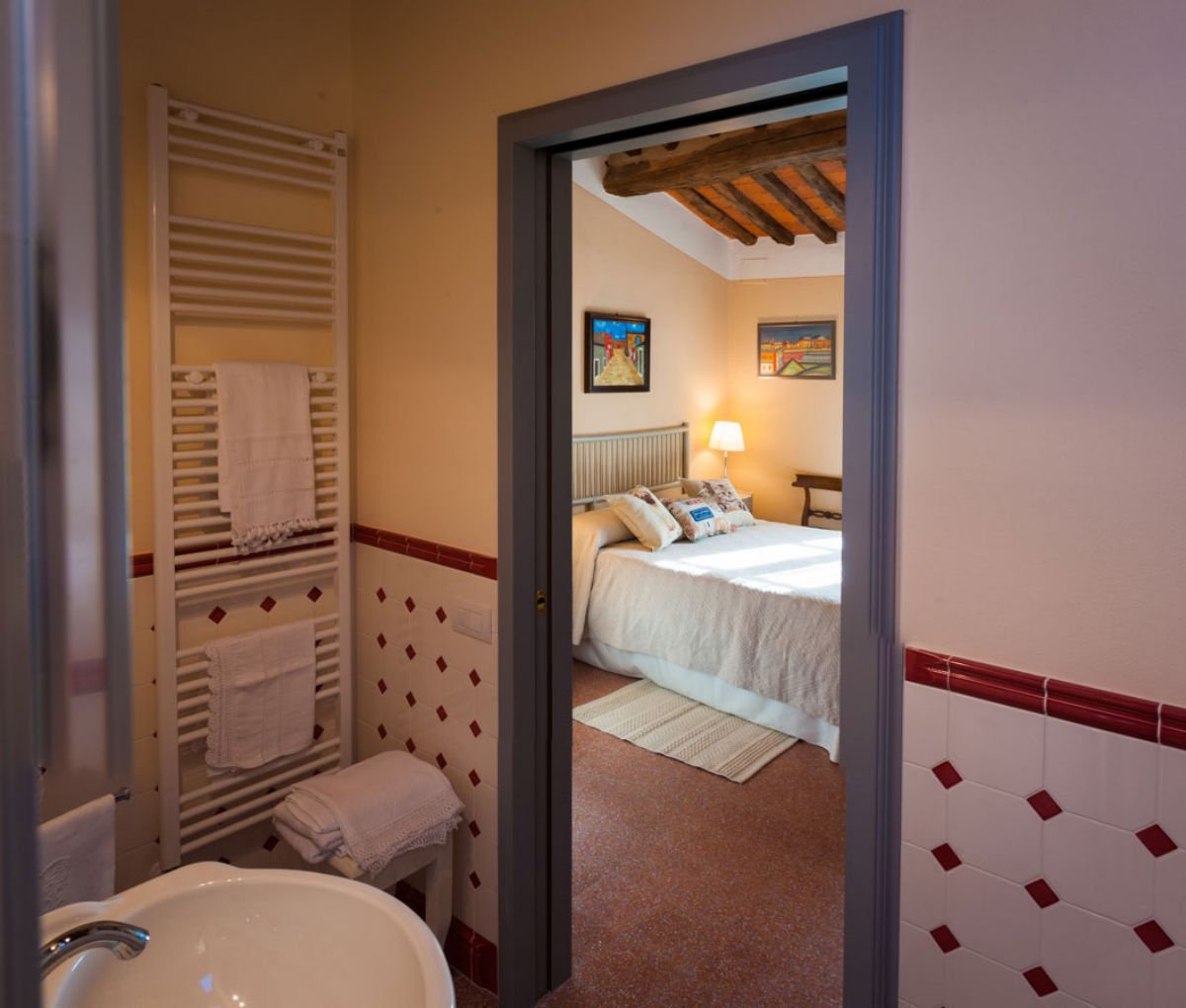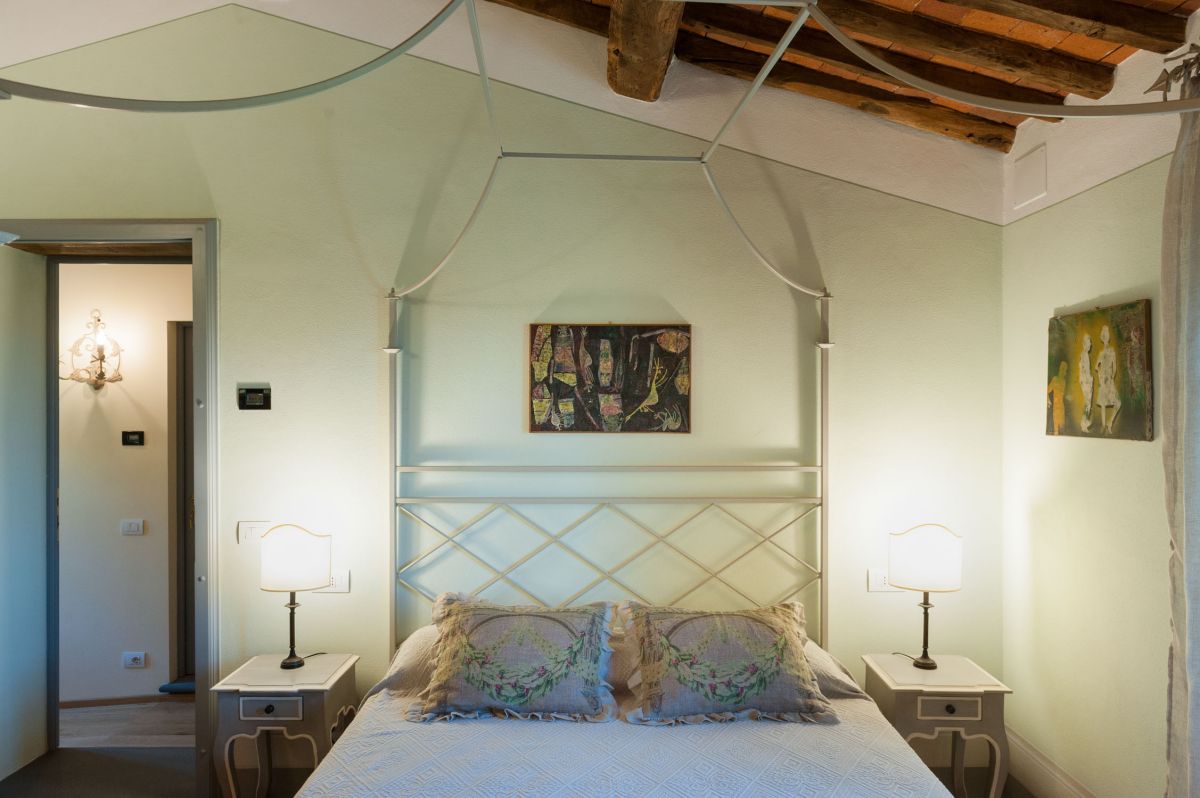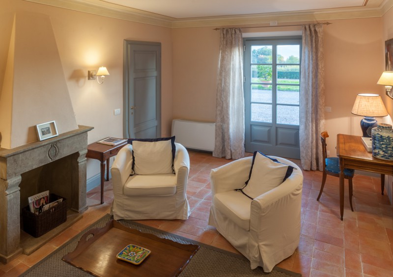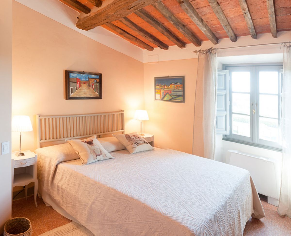 The rooms at Arancera are designed as bright, peaceful retreats where the understated elegance of the historic Lucchese villas meets contemporary comfort. Each space reflects the Tuscan tradition through authentic details: exposed wooden beams, handcrafted wooden window frames, a refined blend of antique furnishings and modern lines, and en-suite bathrooms decorated with hand-painted tiles created by master artisans.