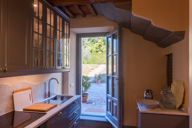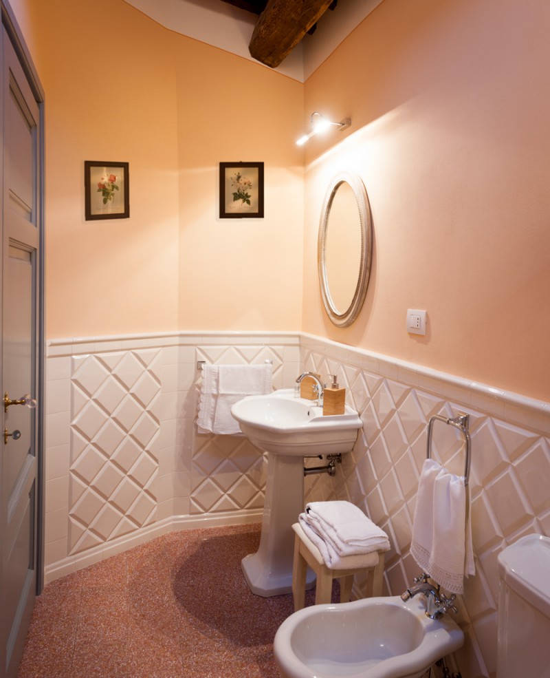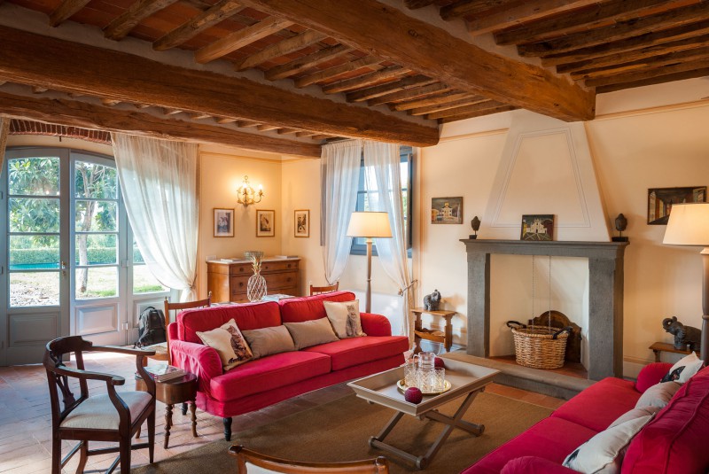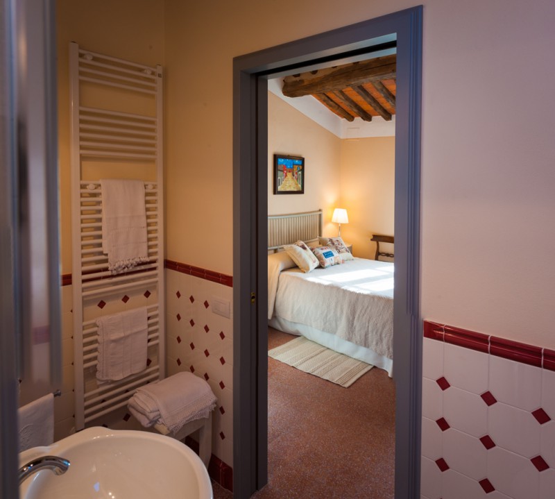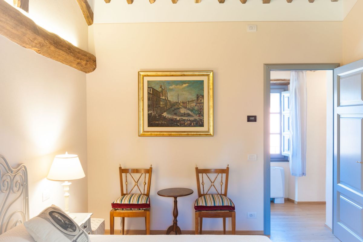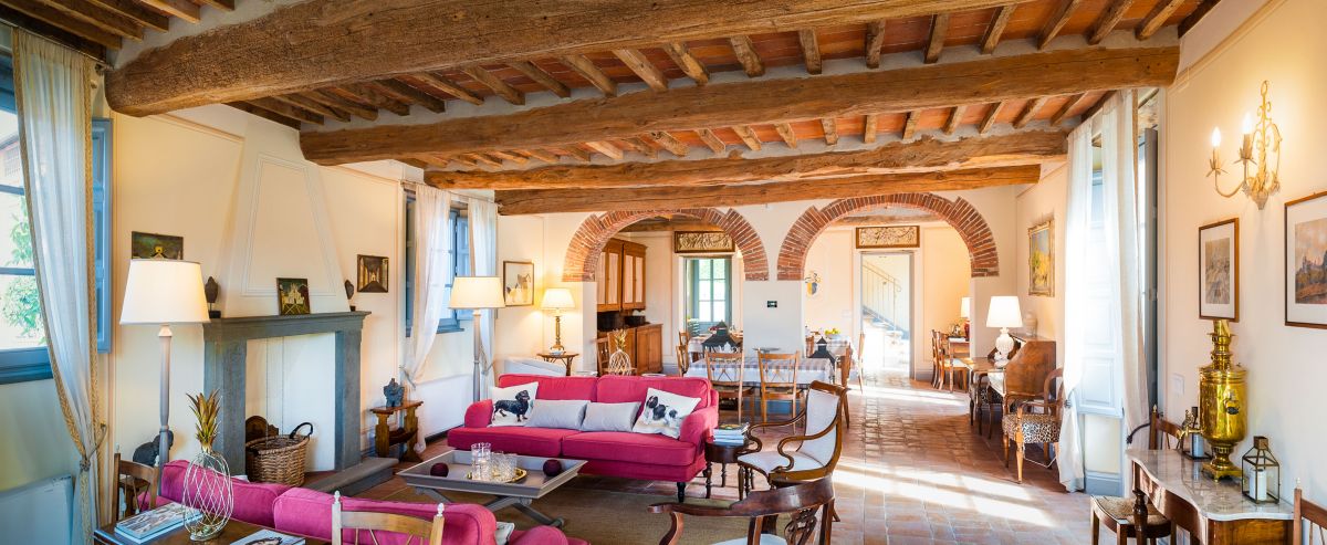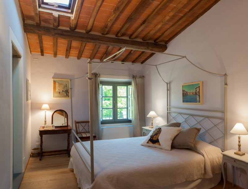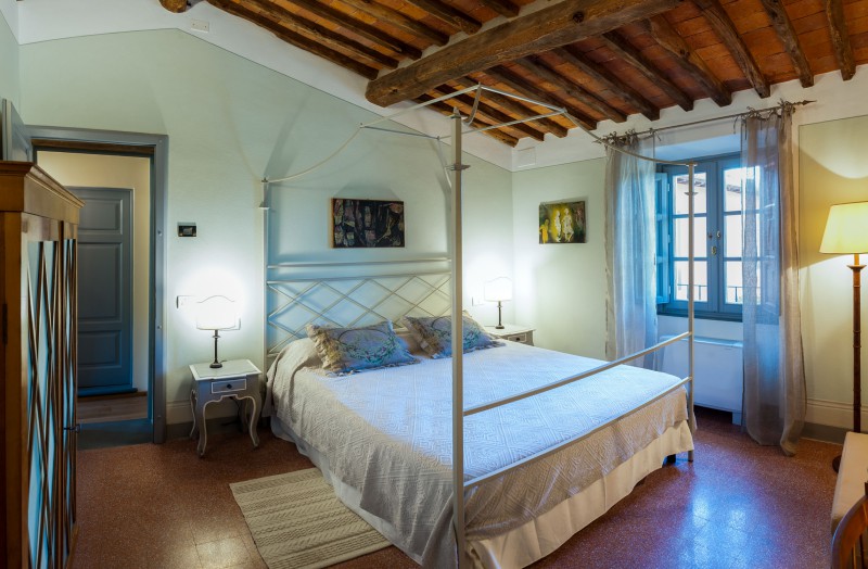 The rooms at Arancera are designed as bright, peaceful retreats where the understated elegance of the historic Lucchese villas meets contemporary comfort. Each space reflects the Tuscan tradition through authentic details: exposed wooden beams, handcrafted wooden window frames, a refined blend of antique furnishings and modern lines, and en-suite bathrooms decorated with hand-painted tiles created by master artisans.
