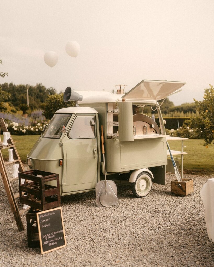 Artisan pizza is freshly prepared in the garden of Arancera thanks to a dedicated pizza van, serving delicious creations for every taste.