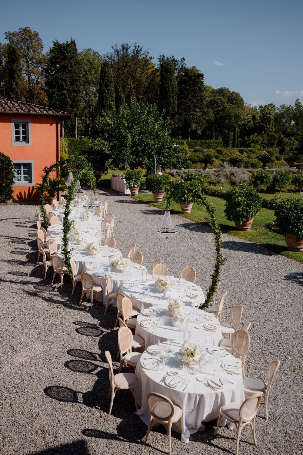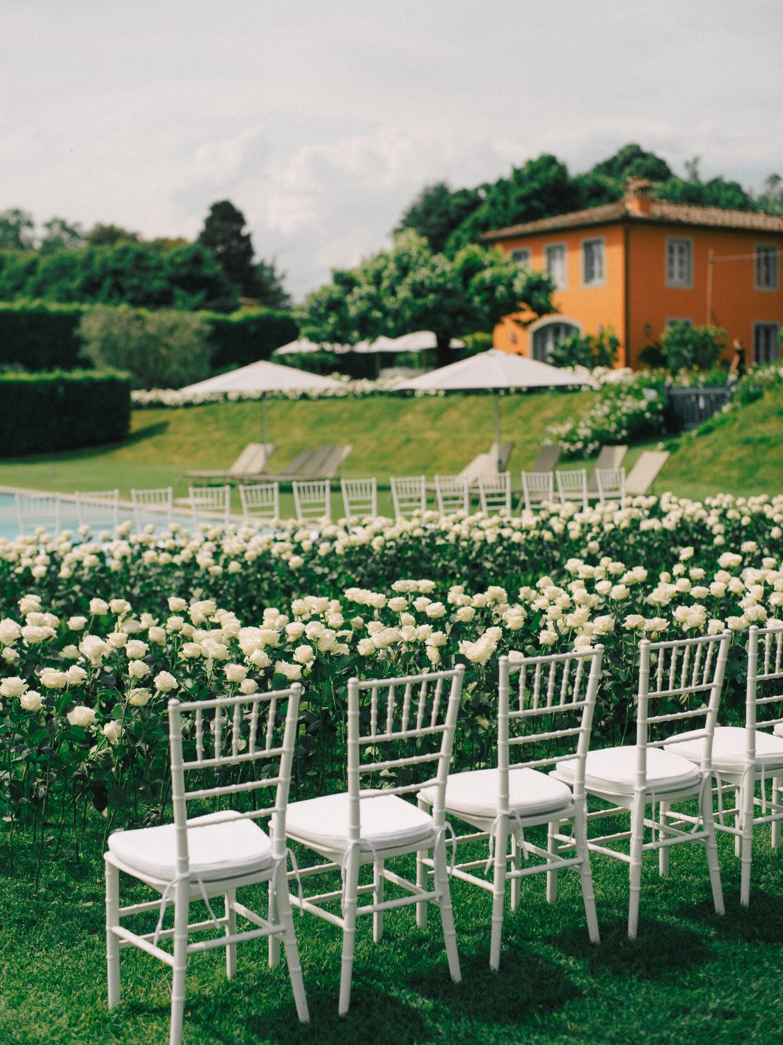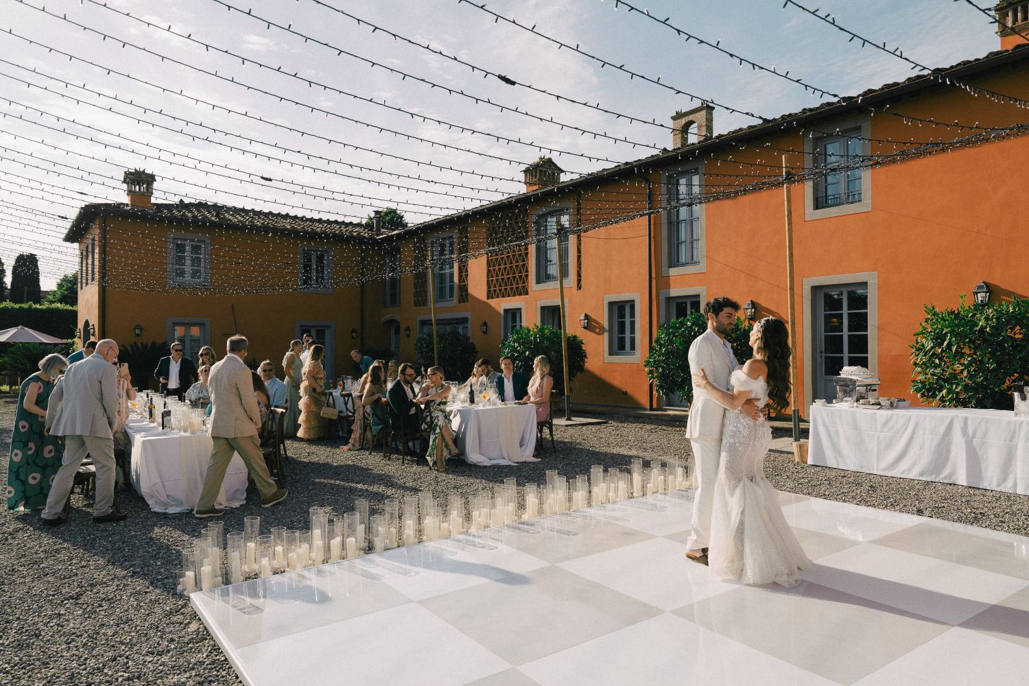 Getting married at Arancera means celebrating in an intimate and luminous setting, surrounded by the Tuscan countryside, with sweeping views over Lucca and the mountains toward Pisa. The villa becomes your private home for the celebration, a place to gather with the people you love and create memories that unfold naturally from ceremony to evening party.