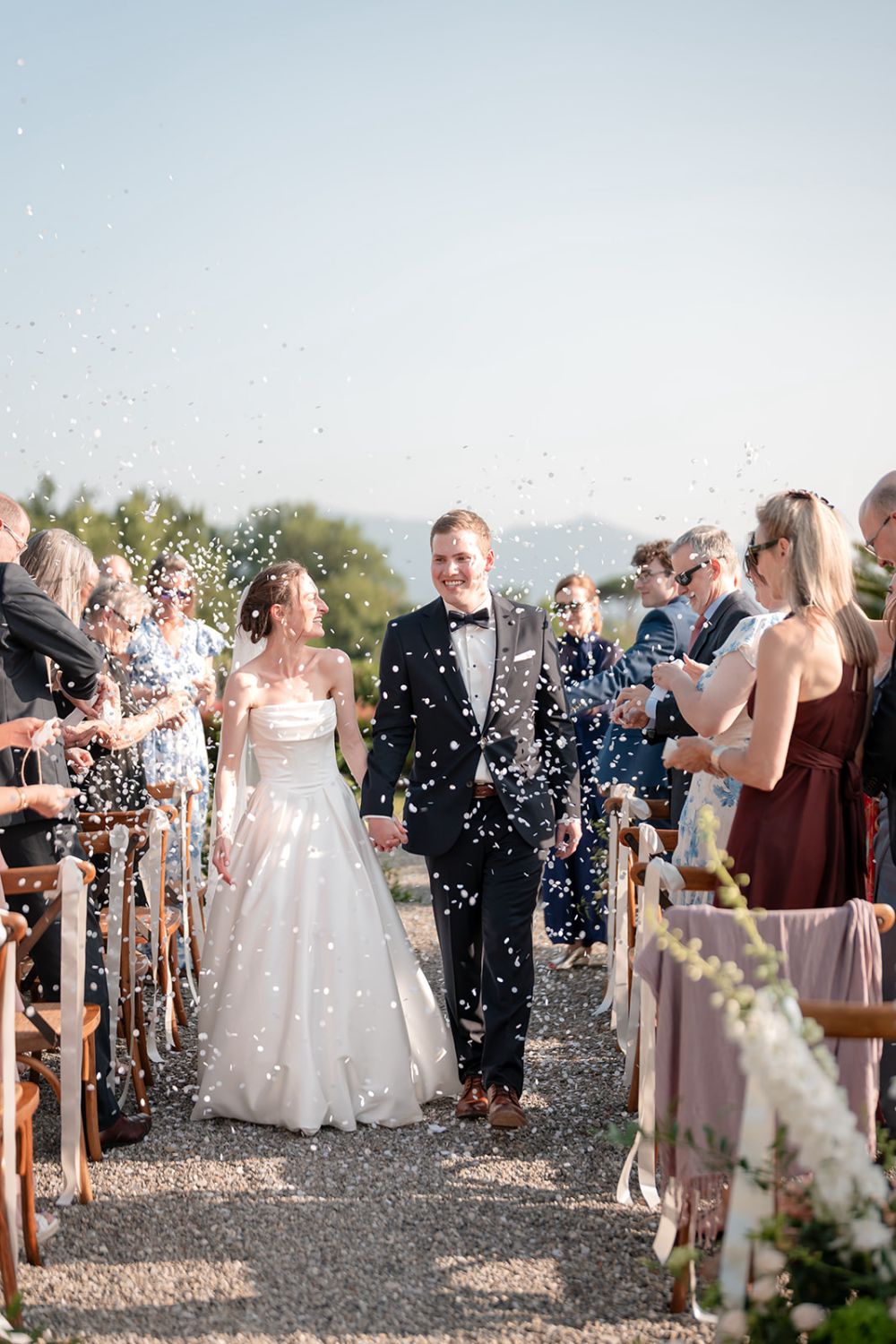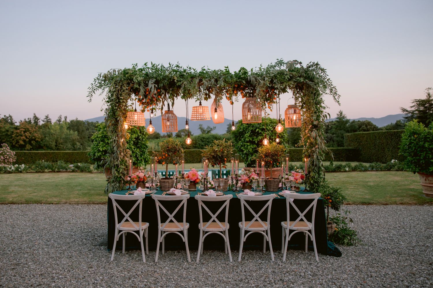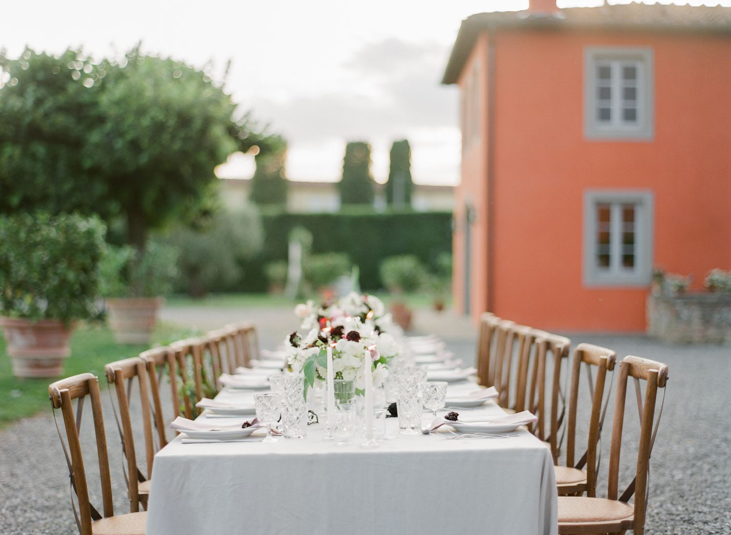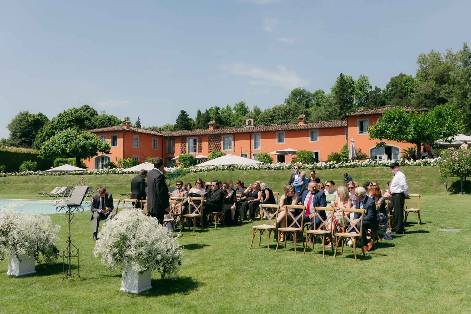 Getting married at Arancera means celebrating in an intimate and luminous setting, surrounded by the Tuscan countryside, with sweeping views over Lucca and the mountains toward Pisa. The villa becomes your private home for the celebration, a place to gather with the people you love and create memories that unfold naturally from ceremony to evening party.